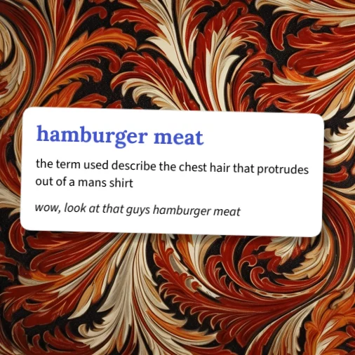 hamburger meat: the term used describe the chest hair that protrudes out of a mans shirt